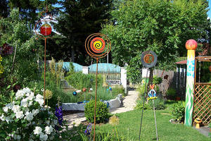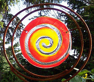 Da ihre Objekte ein wirklich außergewöhnlicher Blickfang sind, finden sie sich oft auf meinen Fotos wieder. In meinem Garten ist ein ganz wichtiger Aspekt das Runde, Harmonische,… daher verwende ich sehr gerne die Kugel, den Kreis, die Spirale, das Kurvige… Die Glasteile ihrer Kunstwerke sind schon sehr faszinierend,… kein Wunder, wo sie die so speziell auswählen. Das Besondere ist ja auch, dass man diese Arbeiten unbeschadet 12 Monate im Jahr im Garten lassen kann, sie also auch den winterlichen, eher farblosen Garten „verzaubern“, selbst die orkanartigen Stürme vor drei Wochen konnten ihnen überhaupt nichts anhaben.