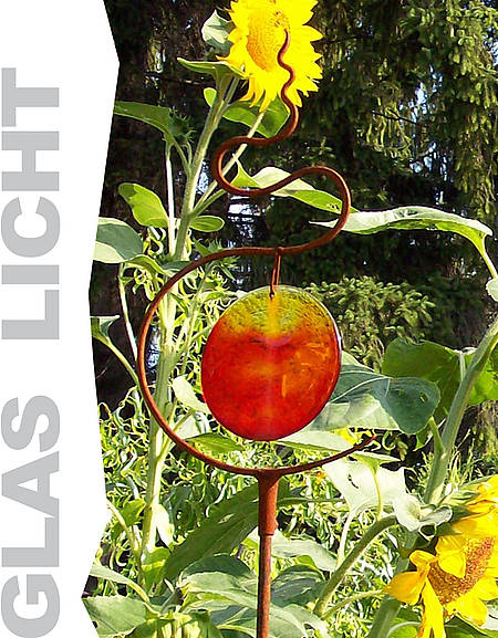 ... besonders die in Einzelanfertigung hergestellten Gläser, die Reinhard Ferstl für seine Lichtgestecke für den Garten wählt. Er stellt sie nicht selbst her, sondern arbeitet mit Glaskünstlern aus Österreich und Deutschland zusammen. Die Gläser unterscheiden sich vollkommen von denen, die als Imitate in letzter Zeit aus China kommen – einfaches geriffeltes Fensterglas, das mehr schlecht als recht bemalt wird. Bei den Gläsern die Ferstl verwendet ist die Farbe als Pigment in das flüssige Glas eingeschmolzen. Der Fachausdruck dafür ist Fusion-Technik. Darauf sollte man beim Kauf unbedingt achten.
